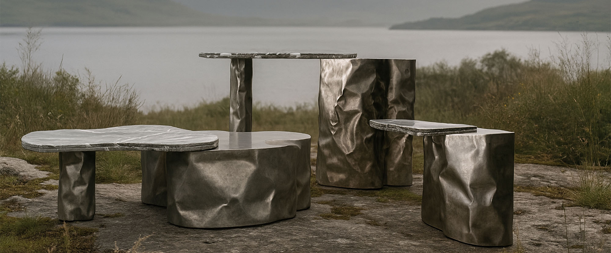 White Domus shares its creative roots with Nitush and Aroosh, an internationally represented art and design studio known for sculptural furniture, lighting, and collectible objects. Exhibited across Europe, the United States, and Australia, their work explores the expressive potential of metal beyond wall art, translating form, reflection, and movement into functional pieces of design.